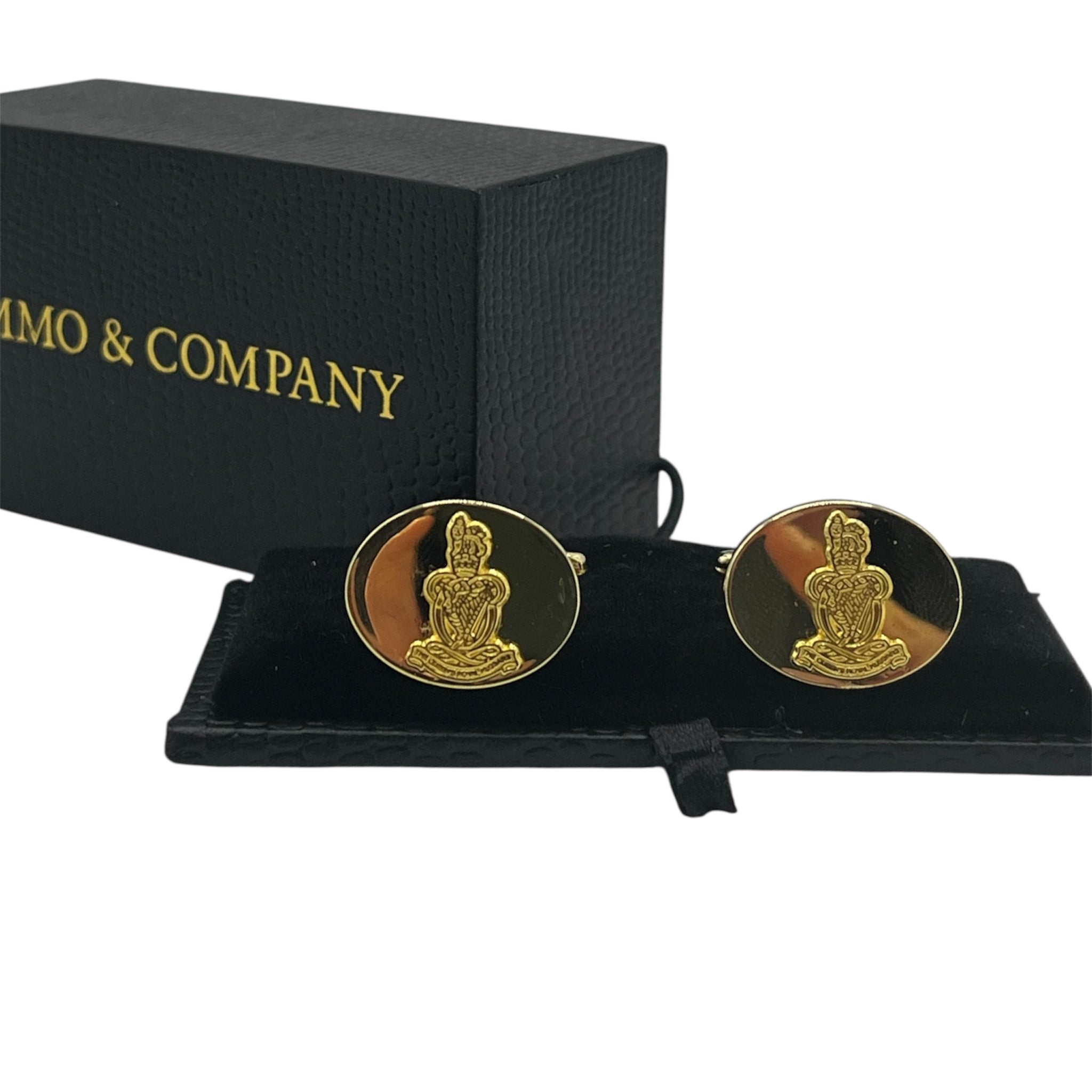 Add a touch of class to any outfit with these smart gilt plate cufflinks, featuring the mounted regimental badge in fine detail.