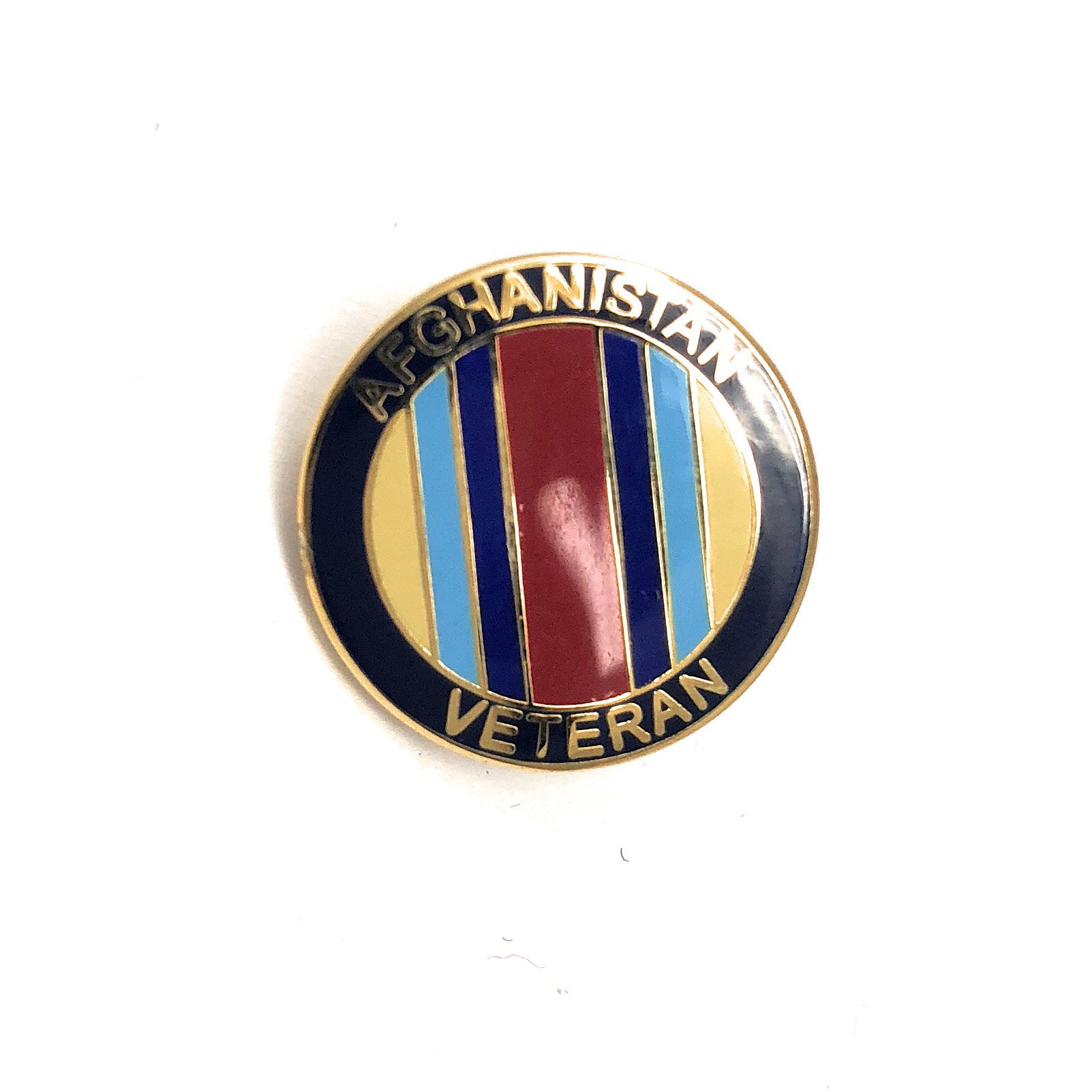 Afghanistan veteran enamel lapel pin with staple and clasp fitting supplied in a plastic box.