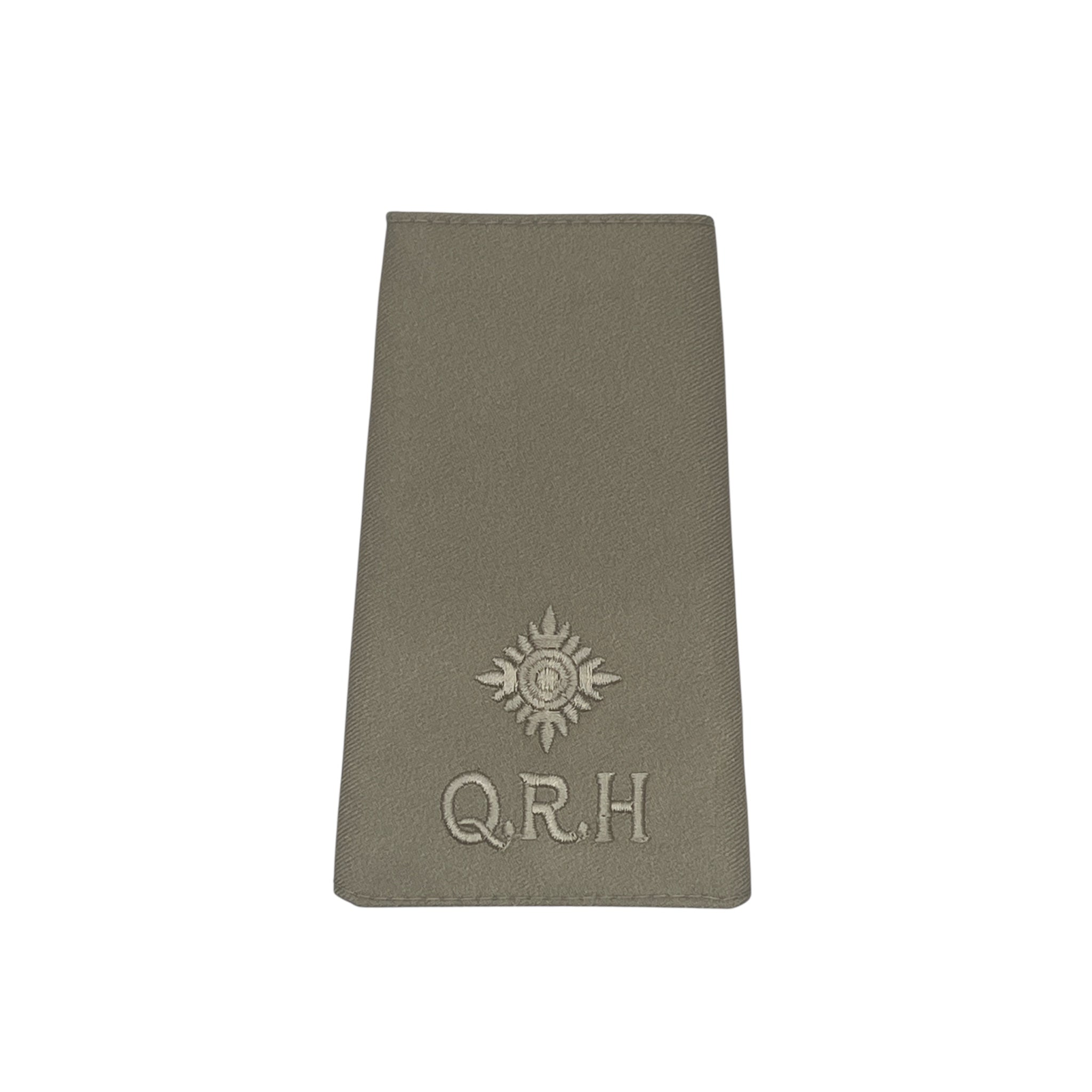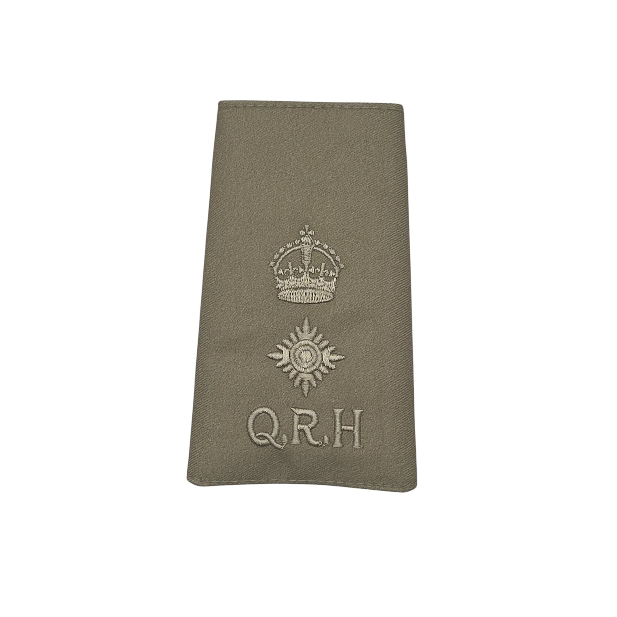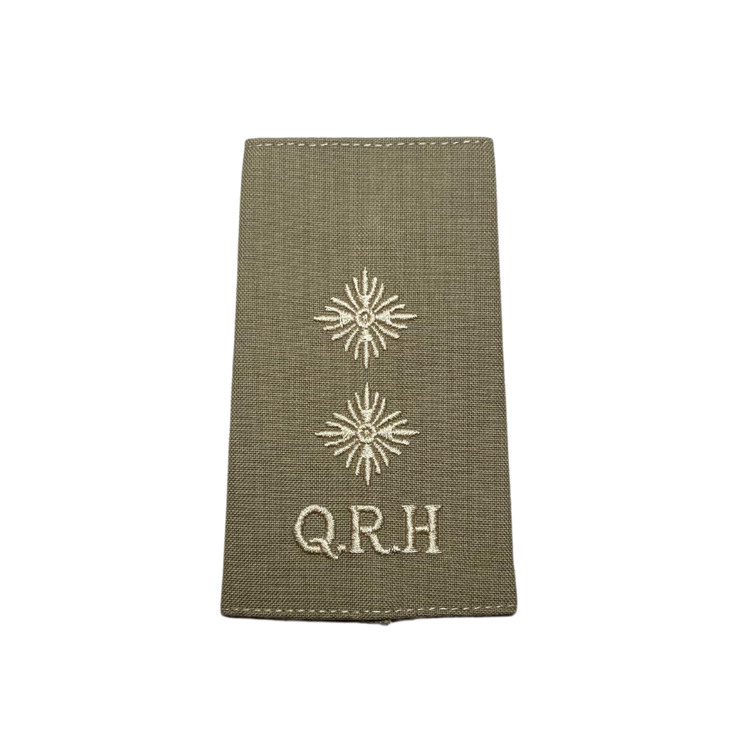 Officers & RSM wear buff with white insignia in barracks. Green with black insignia in the field. Exceptions green and black slides are always worn with smocks, waterproof jackets and coveralls.